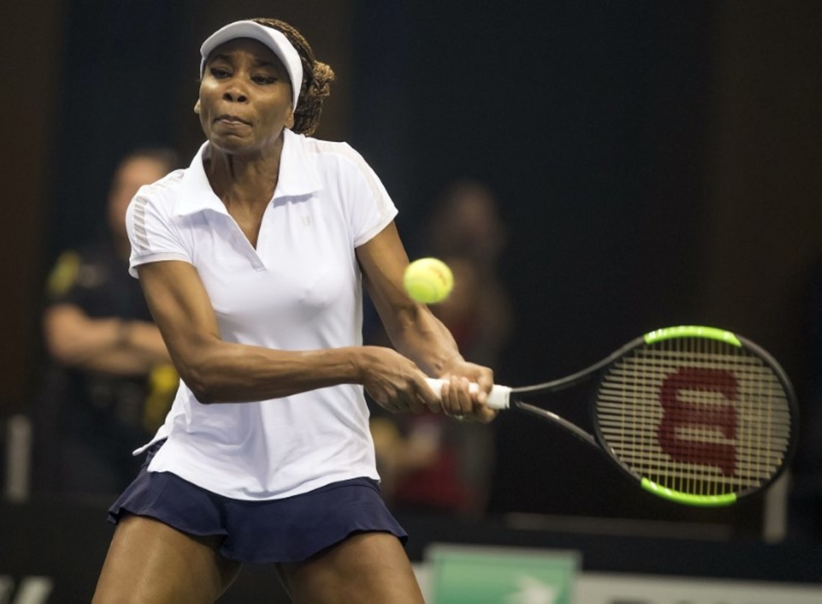 Feb 10, 2018; Asheville, NC, USA; Venus Williams (USA) in action during her match against Arantxa Rus (NED, not pictured) during the Fed Cup tie at U.S. Cellular Center. Susan Mullane-USA TODAY Sports