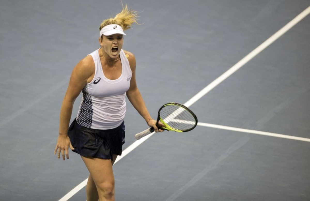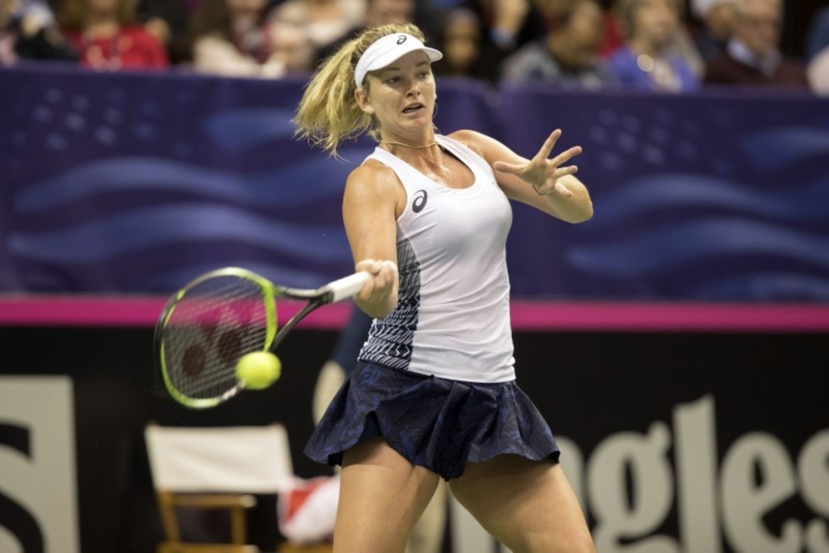 Feb 10, 2018; Asheville, NC, USA; Venus Williams (USA) in action during her match against Arantxa Rus (NED, not pictured) during the Fed Cup tie at U.S. Cellular Center. Susan Mullane-USA TODAY SportsFeb 10, 2018; Asheville, NC, USA; Venus Williams (USA) and Team captain Kathy Rinaldi hug after Venus records matchpoint in her match against Arantxa Rus (NED, not pictured) during the Fed Cup tie at U.S. Cellular Center. Susan Mullane-USA TODAY SportsFeb 10, 2018; Asheville, NC, USA; Coco Vandeweghe (USA) reacts in her match against Richel Hogenkamp, (NED, not pictured) in their match during the Fed Cup tie at U.S. Cellular Center. Susan Mullane-USA TODAY SportsFeb 10, 2018; Asheville, NC, USA; Richel Hogenkamp, (NED) reacts during her match against Coco Vandeweghe (USA, not pictured) in their match during the Fed Cup tie at U.S. Cellular Center. Susan Mullane-USA TODAY SportsFeb 10, 2018; Asheville, NC, USA; Richel Hogenkamp, (NED) in action during her match against Coco Vandeweghe (USA, not pictured) in their match during the Fed Cup tie at U.S. Cellular Center. Susan Mullane-USA TODAY SportsFeb 10, 2018; Asheville, NC, USA; Coco Vandeweghe (USA) in action during her match against Richel Hogenkamp, (NED, not pictured) in their match during the Fed Cup tie at U.S. Cellular Center. Susan Mullane-USA TODAY SportsFeb 10, 2018; Asheville, NC, USA; Coco Vandeweghe (USA) in action during her match against Richel Hogenkamp, (NED, not pictured) in their match during the Fed Cup tie at U.S. Cellular Center. Susan Mullane-USA TODAY Sports