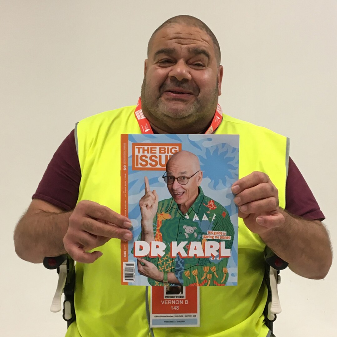 If you've ever been to Adelaide's city centre, you might have seen Vernon in his bright vest with The Big Issue in hand.