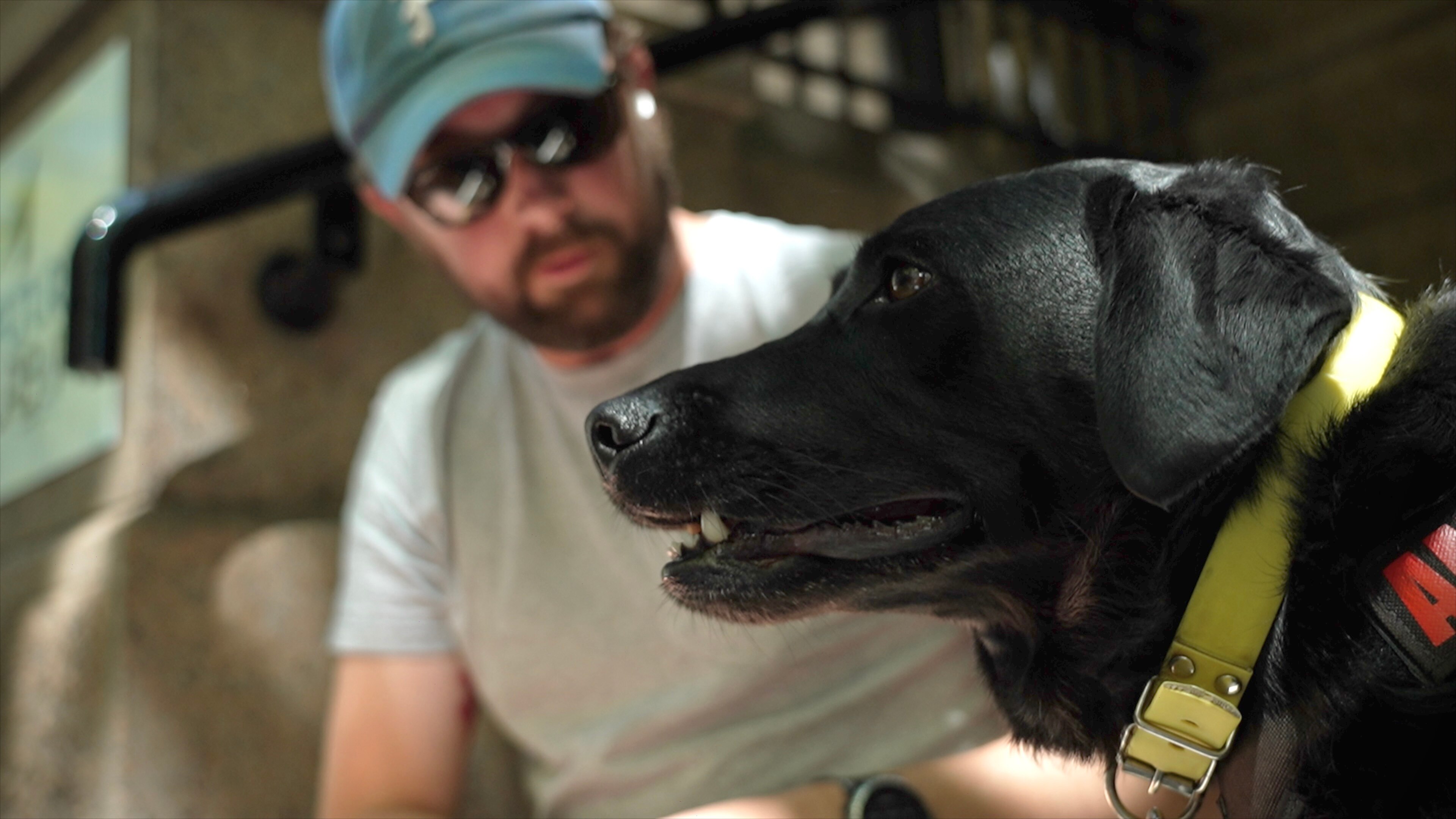Highly-trained psychiatric assistance dogs (PAD) like Amelia are provided by the department to veterans struggling with trauma.