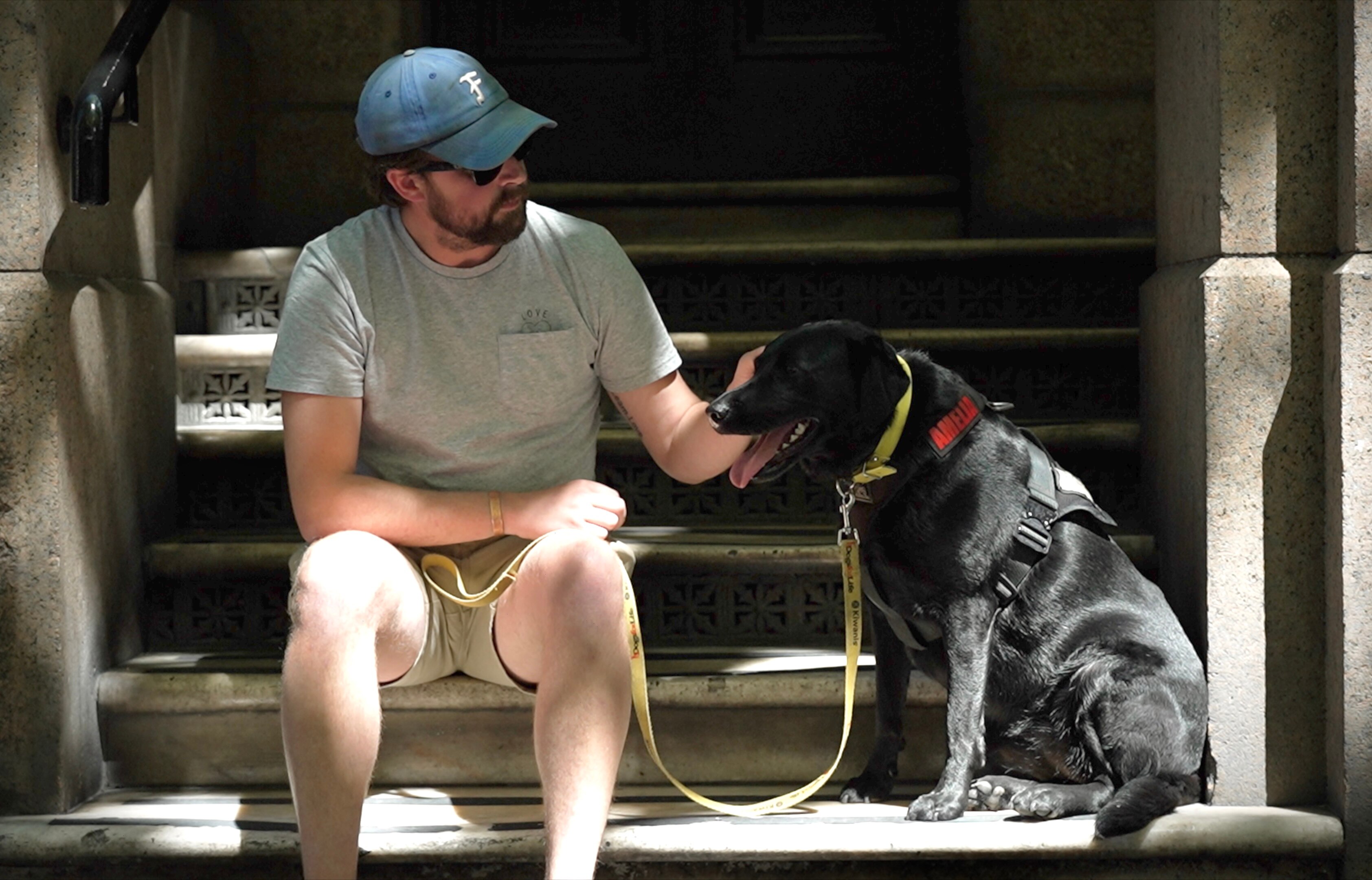 The black Labrador, provided by the Department of Veterans' Affairs (DVA), has been his companion for three years and helps with his mental health.