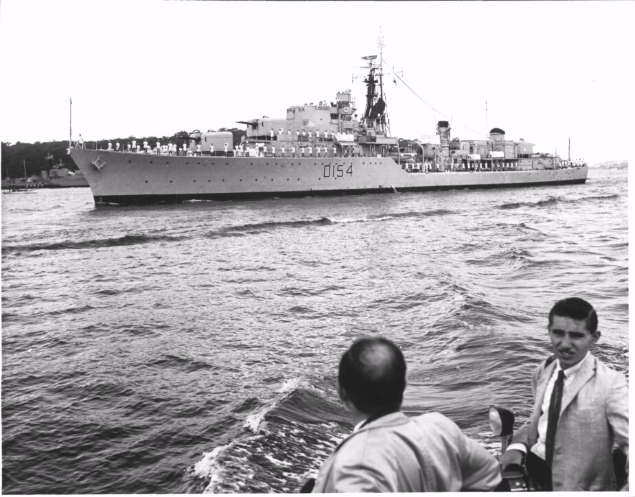 HMAS Melbourne had undergone a re-fit and he noticed the floodlights now had red filters.