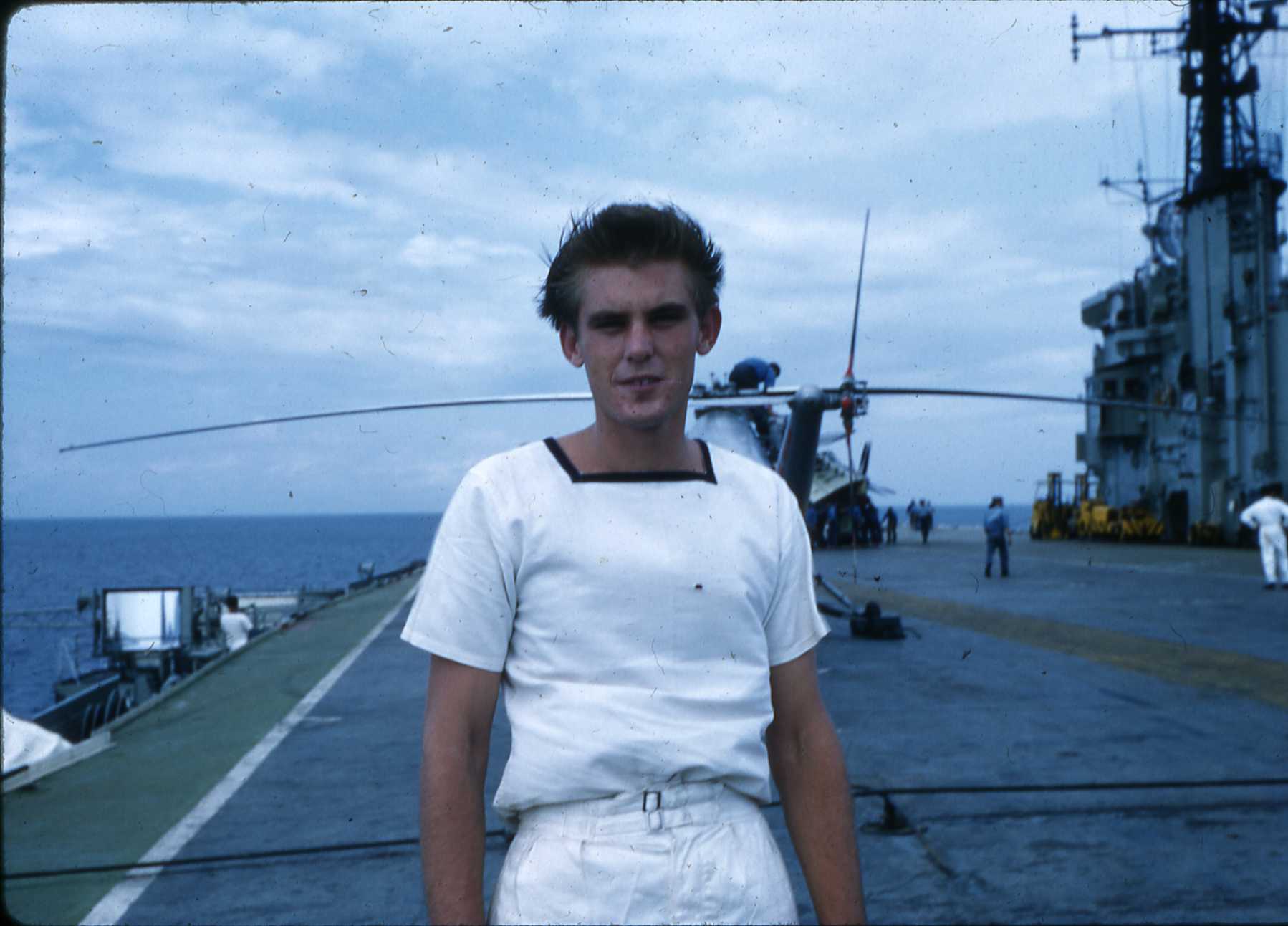 He was the duty electrician that night and set up floodlighting on the aircraft carrier to light the deck and island section for the aircraft.