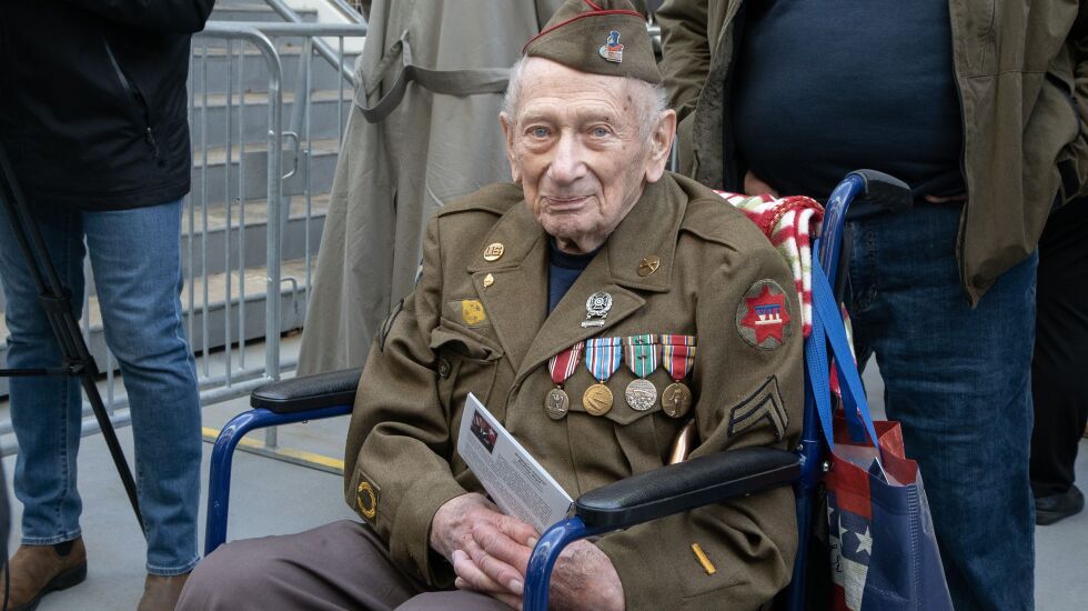 Bob Holbach, 98, who lives near Irving and Pulaski on the Northwest Side, served in World War II.