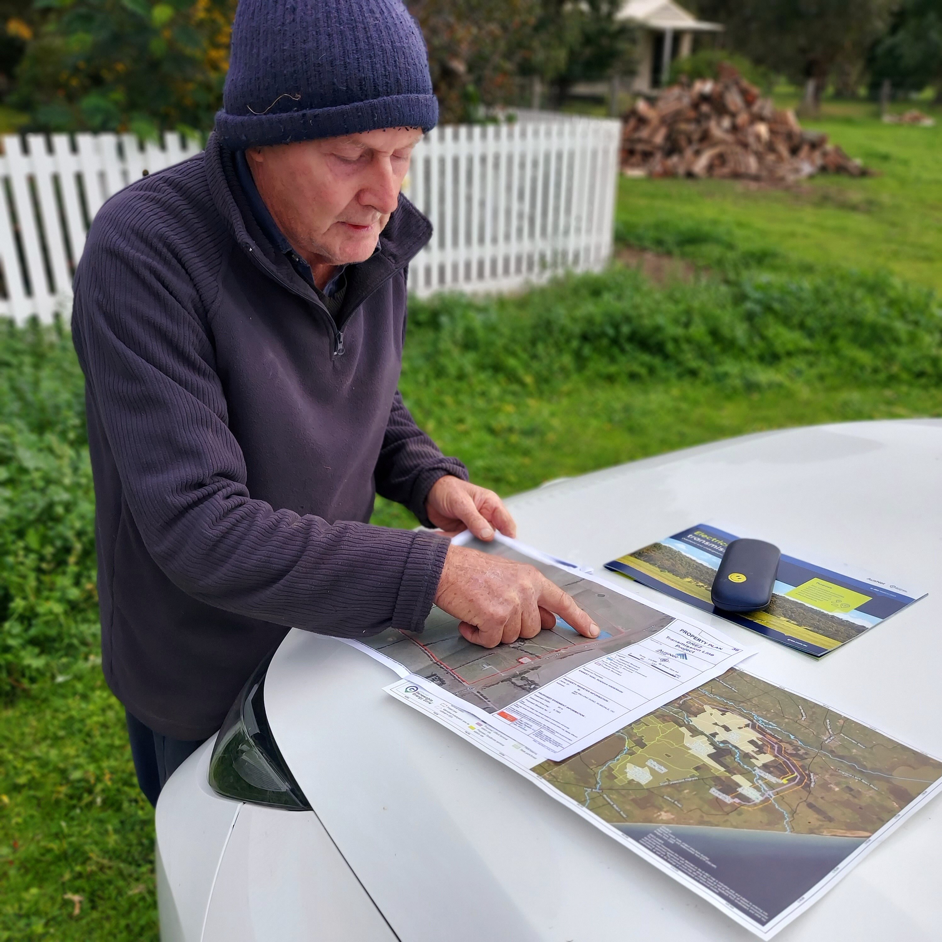At a VicGrid public consultation in central Gippsland in early May, Rosedale farmer Noel Anderson came armed with a map he had been provided by AusNet, which showed four 80-metre towers connecting the transmission line diagonally across his property.