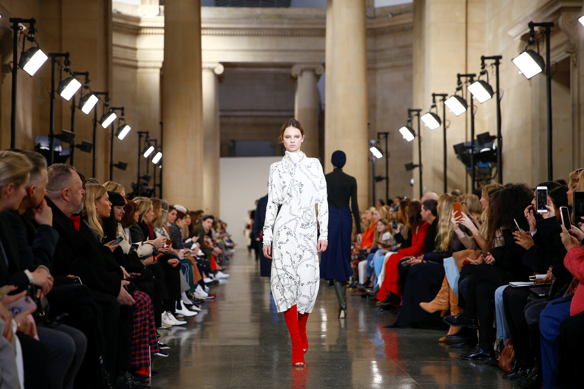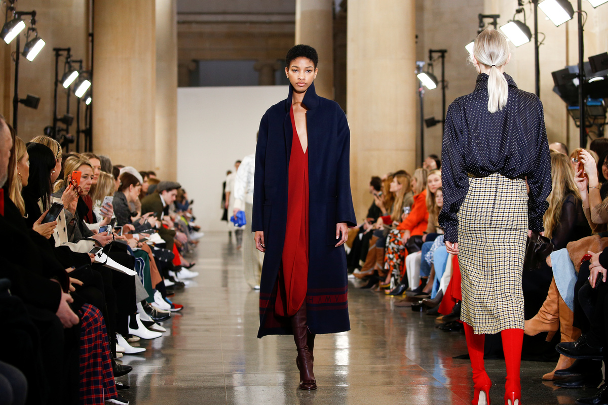 Sustainable fashion, Britain's looming exit from the European Union and climate change were addressed as models presented oversized checkered coats, tailored jackets, silk dresses, fitted knitwear and clashing prints.