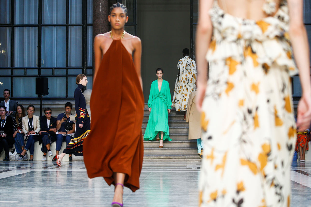 Dresses came in an array of lengths and styles - frilly, layered, floaty, with puffed up sleeves, slits or slim-fit and in bright colors or floral prints.