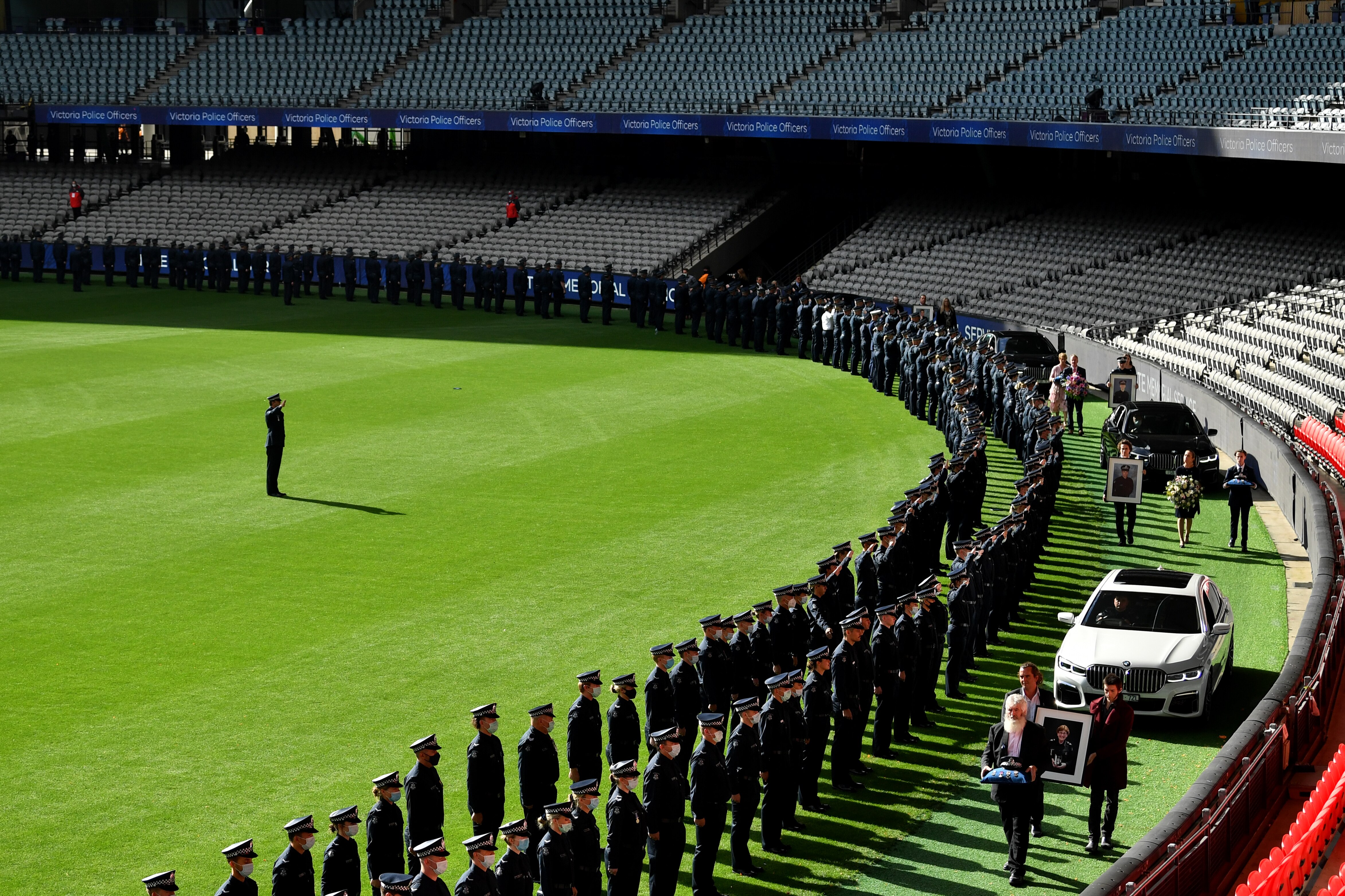 The lives of four Victoria Police officers killed in the line of duty almost two years ago are being honoured in a state memorial service at Docklands Stadium.