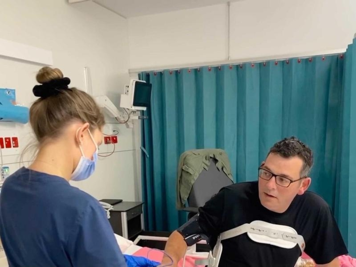 As part of his preparation for his return to work, Mr Andrews received his first dose of the Pfizer COVID-19 vaccine at The Alfred on Wednesday.