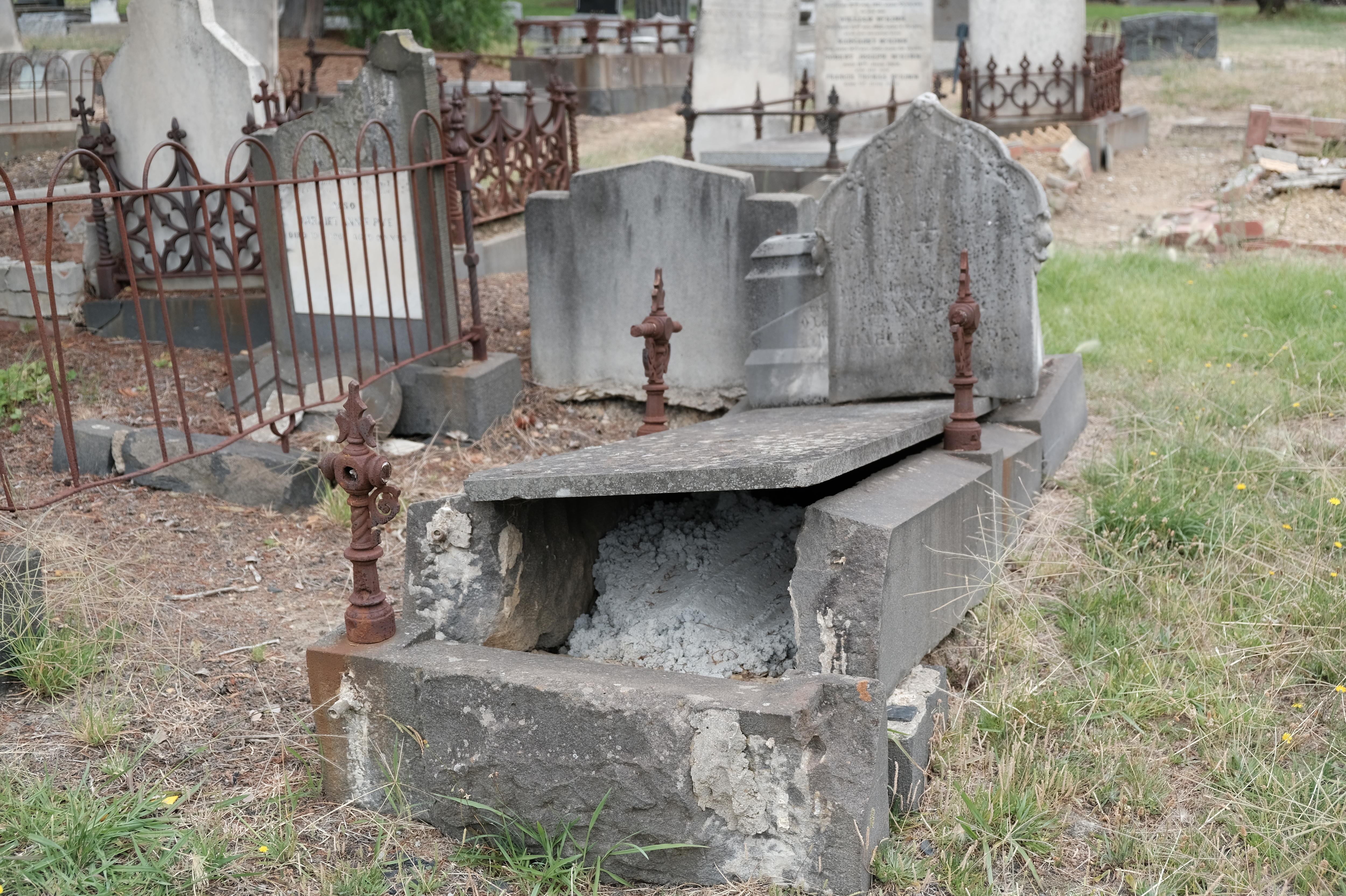 The group's president Rosemary Reddick said while volunteers did all they could to minimise damage to graves, Victoria's burial laws meant without the permission of a descendant or rights holder, their hands were tied.