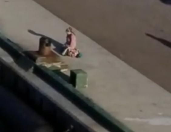 A distraught mother fell to her knees as she watched a cruise ship pull away with her children on board.