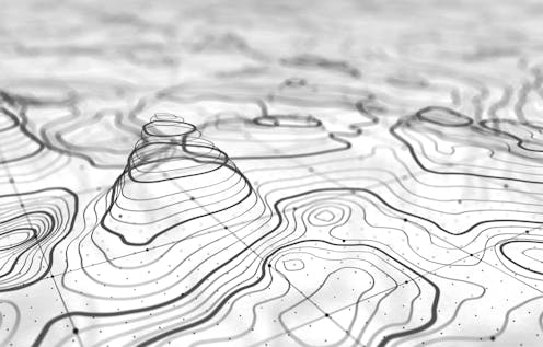 This complex landscape requires players to navigate using a detailed topographic map. A topographic map is a map with contour lines that show places of equal height. Closely spaced lines indicate a steep slope, and widely spaced lines indicate a gradual slope.