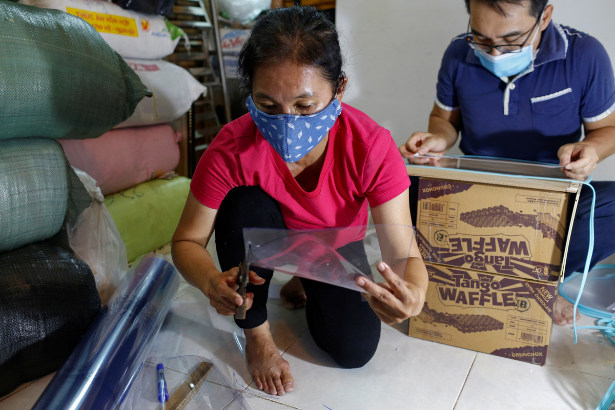 But following a nationwide lockdown to curb the spread of the coronavirus, the 42-year-old vendor has turned to making plastic face shields for frontline medical workers instead.