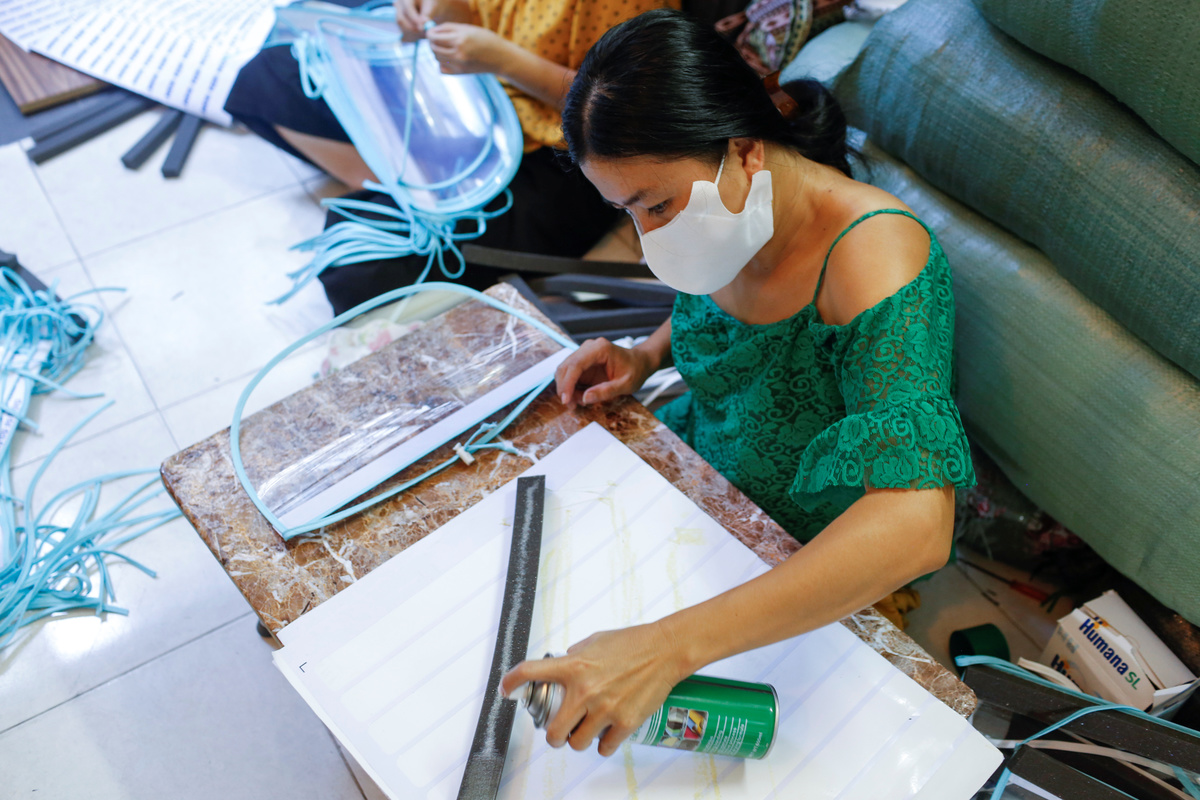 When the lockdown began, Linh assembled a group of family members, friends and fellow vendors to start making the face shields. They can be worn in addition to face masks to better protect medical workers from the tiny virus-carrying droplets released by infected patients.