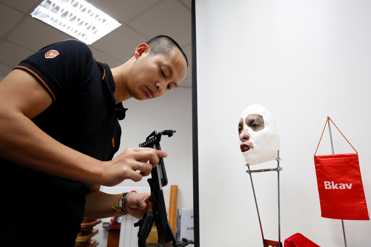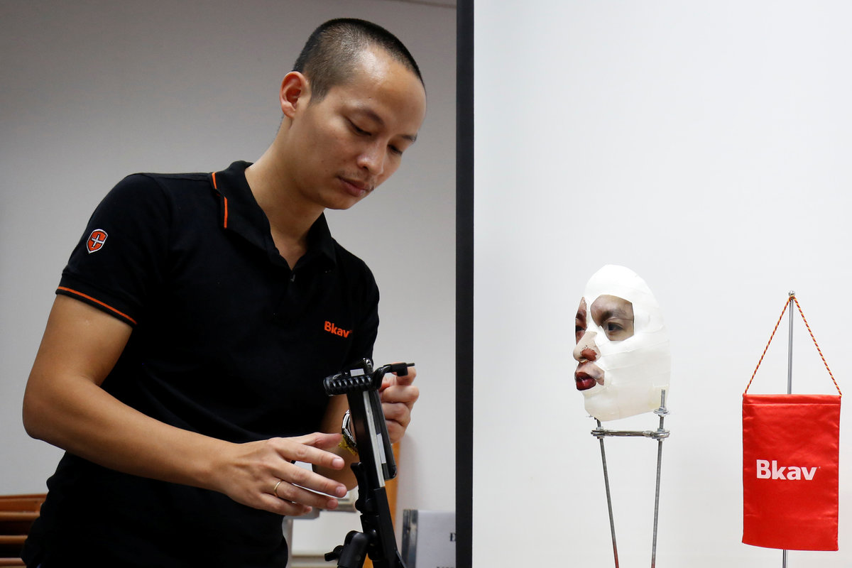 Ngo Tuan Anh, Bkav's vice president, gave Reuters several demonstrations, first unlocking the phone with his face and then by using the mask. It appeared to work each time.