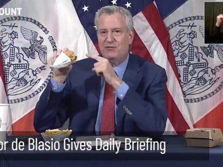 Bill DeBlasio was ridiculed for biting into a burger and fries from Shake Shack during a Covid briefing, described by viewers as both “a fireable offence” and “deeply unsettling”.