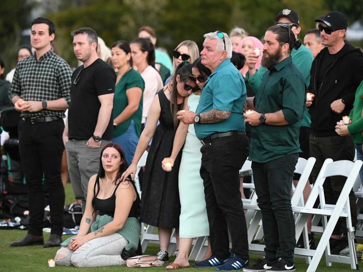 Susie from the Arundel Presbyterian Church, who walked her children to school with Ms Wilkinson and her three children, led the crowd in a prayer for her friend, her family and the tight-knit community.