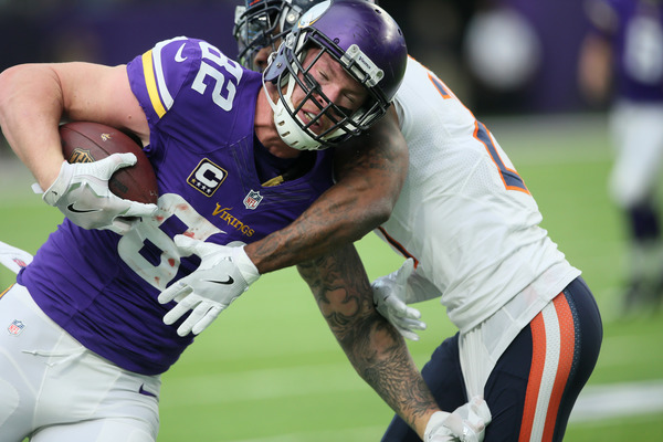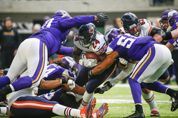 After the Vikings defense stuffed Bears running back Jordan Howard, who had 135 rushing yards Sunday, on 4th and 1, the Vikings put the game away with a 10-yard touchdown run by McKinnon out of the Wildcat.