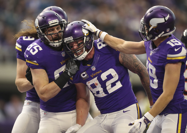 It was Rudolph's 29th career touchdown, the most ever by a Vikings tight end. He also caught 11 passes Sunday, giving him 83 receptions on the season, which set the single-season franchise mark for the position.