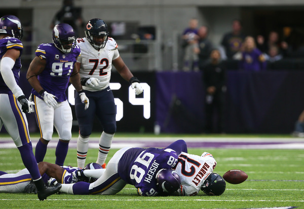 In the third quarter, the bad-news Bears picked up where they left off. Barkley threw another interception, this one to cornerback Trae Waynes, to put an end to another drive that had entered Vikings territory.