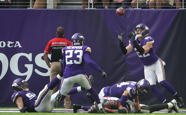 Keenum threw for a career-high 369 yards, throwing two touchdowns to Diggs (eight receptions, 173 yards) one to Jarius Wright (two receptions, nine yards) behind a line that allowed him to get hit just four times in the game. Perhaps more impressive, though, was the work the group did opening holes for rookie Dalvin Cook, who gained 97 yards and posted his fourth run of at least 20 yards when he surged for 26 yards in the third quarter, through a hole opened by down blocks from Joe Berger and Mike Remmers.