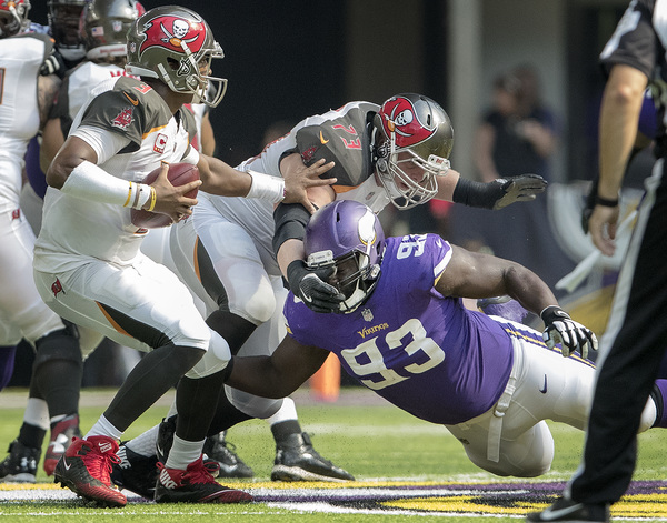 The Vikings, who hadn't forced a turnover during the first three weeks of the season, picked off Winston three times on Sunday, with their first interception coming when Trae Waynes _ who'd been picked on for much of the first half _ snatched an underthrown deep ball intended for DeSean Jackson.