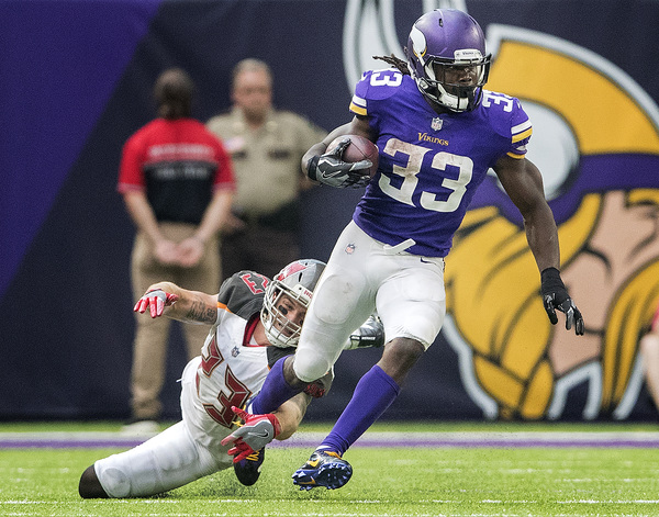 Peterson set a NFL single-game record with 296 yards later that season, but the work his successor has done as both a running back and receiver has quickly quelled discussion of how the Vikings' offense would function without their all-time leading rusher.
