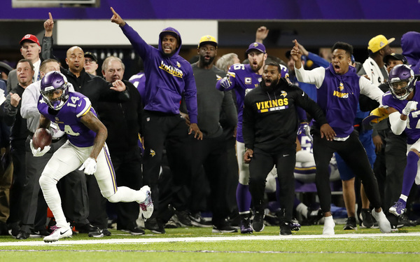 In a desperate attempt to get into field goal range with 10 seconds left, Case Keenum hit Stefon Diggs in Saints territory. But instead of going out of bounds after making a leaping grab, Diggs turned up the sideline, past a diving Marcus Williams tackle and into Vikings history with a 61-yard touchdown that gave Minnesota a 29-24 win over the New Orleans Saints as time expired.