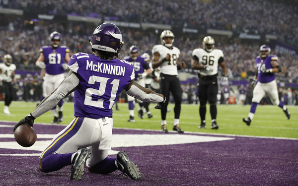 Ryan Quigley's punt dropped in the end zone for his first touchback of the season, and the Saints drove 80 yards for a touchdown on their ensuing drive, with Drew Brees hitting Michael Thomas for a three-yard score a play after Thomas' hit knocked safety Andrew Sendejo out of the game and sent Xavier Rhodes into a frenzy.