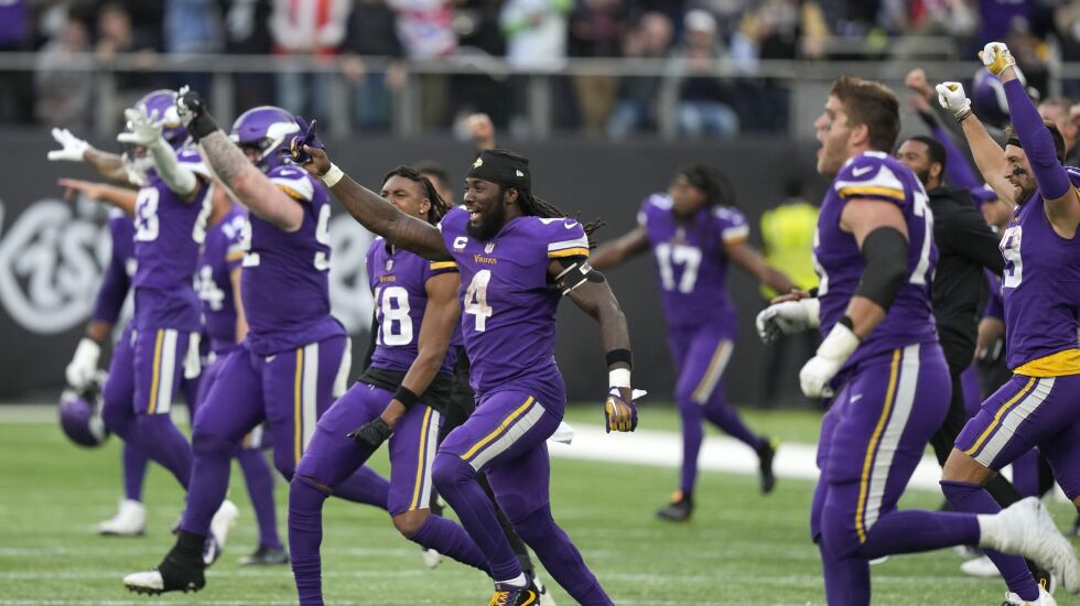 The Vikings improved to 3-0 in London games — with wins in three different stadiums. The Vikings beat the Pittsburgh Steelers 34-27 in 2013 at Wembley Stadium and topped the Cleveland Browns 33-16 four years later at Twickenham Stadium.