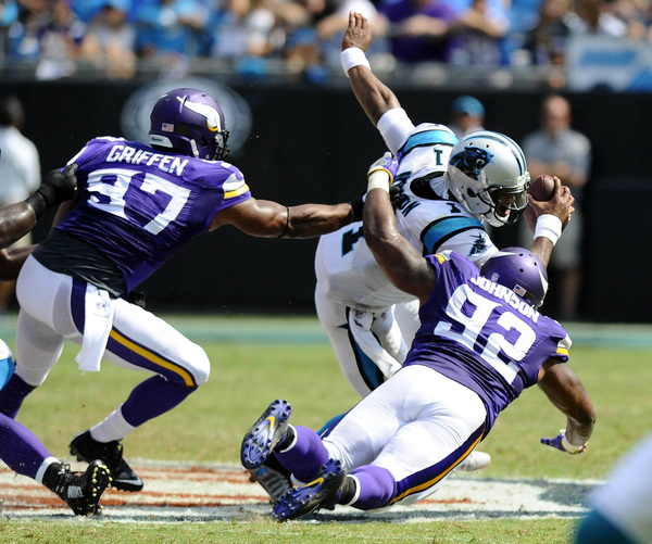The Vikings have hit Newton a lot in recent seasons, with 12 sacks in the teams' last two meetings.
