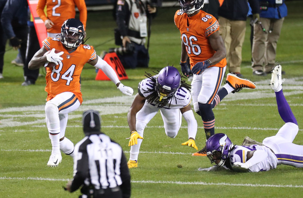 But the Vikings' lead at halftime was only 7-6, thanks to a couple of the only-in-Chicago moments that seem to befall them every year.