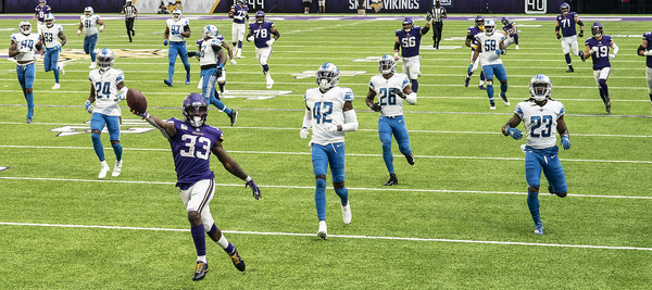 A Vikings secondary missing Mike Hughes, Cameron Dantzler and Holton Hill got the benefit of a curious Lions game plan, with offensive coordinator Darrell Bevell insistent on running the ball with Adrian Peterson and D'Andre Swift rather than testing the Vikings' defensive cohesion downfield.