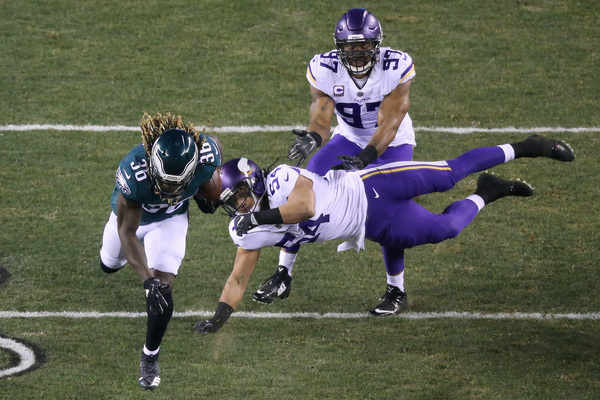 A defense that had only allowed one quarterback to throw for more than 300 yards this season was filleted by Nick Foles, the Eagles quarterback that had taken over for Carson Wentz just over a month ago. Foles threw strikes past just about everybody in the Vikings' decorated secondary: past All-Pro safety Harrison Smith, past venerable corner Terence Newman, past former 11th overall pick Trae Waynes. He finished with 352 yards and three touchdowns, completing 26 of his 33 passes while being sacked once.