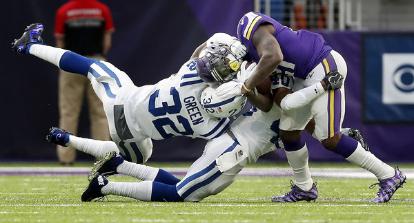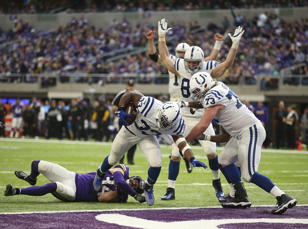 The Colts marched right back down the field to score again, with Turbin shaking loose of three Vikings defenders on his way into the end zone.