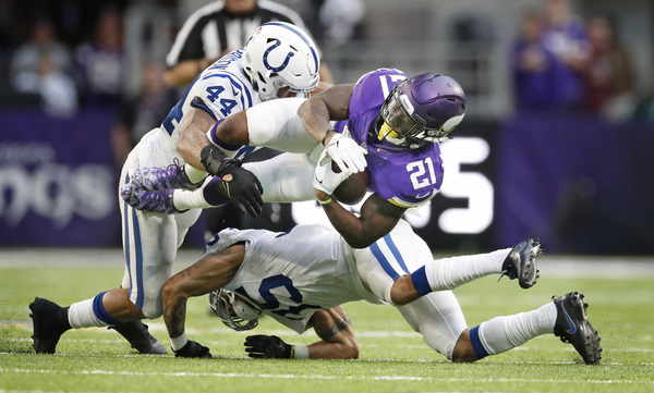 Adrian Peterson sprinted out of the tunnel, his return giving the Vikings an emotional lift. The Indianapolis Colts were forced to start three rookie offensive linemen against one of the NFL's most ferocious pass rushes. The fans were fired up, even if it was simply because they were inside.
