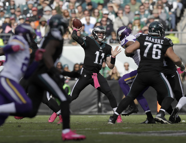 Carson Wentz, the poised rookie QB from North Dakota State who made the Eagles willing to trade Bradford to the Vikings last month, coughed up three turnovers himself. But he at least got his offense in the end zone when it mattered, something Bradford could not do until his touchdown pass to Cordarrelle Patterson with 34 seconds left.