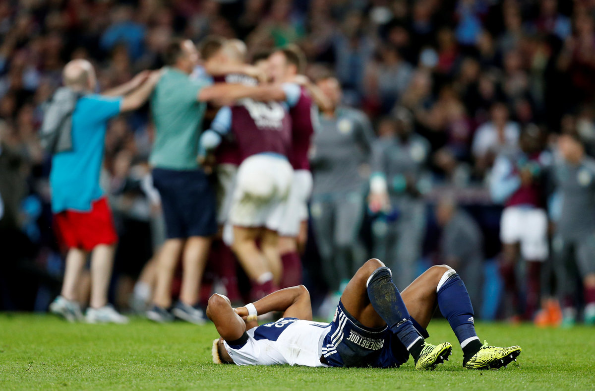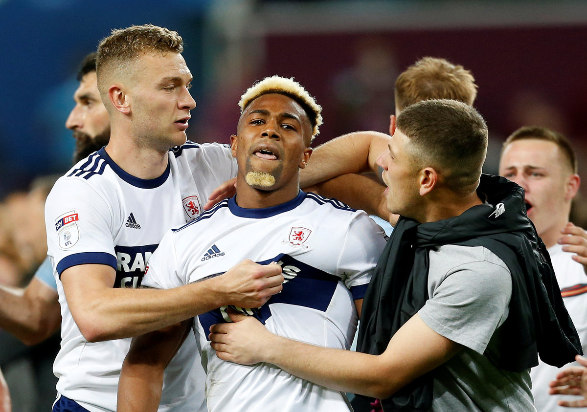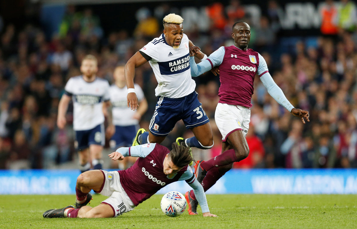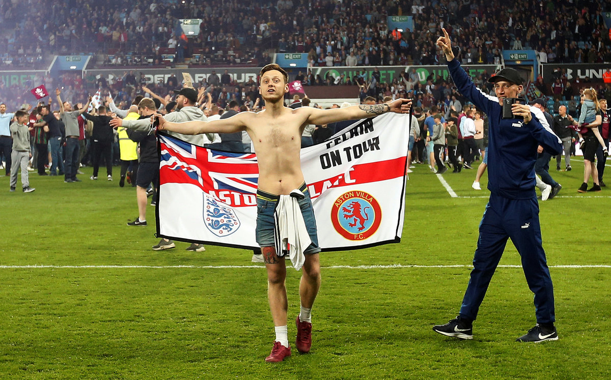 Soccer Football - Championship Play Off Semi Final Second Leg - Aston Villa v Middlesbrough - Villa Park, Birmingham, Britain - May 15, 2018 Aston Villa fan holds up a poster as he celebrates after the match Action Images via Reuters/Craig Brough Soccer Football - Championship Play Off Semi Final Second Leg - Aston Villa v Middlesbrough - Villa Park, Birmingham, Britain - May 15, 2018 Aston Villa's Jack Grealish and Albert Adomah in action with Middlesbrough's Adama Traore Action Images via Reuters/Ed Sykes Soccer Football - Championship Play Off Semi Final Second Leg - Aston Villa v Middlesbrough - Villa Park, Birmingham, Britain - May 15, 2018 Middlesbrough fan looks dejected after the match Action Images via Reuters/Ed Sykes Soccer Football - Championship Play Off Semi Final Second Leg - Aston Villa v Middlesbrough - Villa Park, Birmingham, Britain - May 15, 2018 Middlesbrough's Adama Traore is helped up by Middlesbrough's Ben Gibson and Aston Villa's Mile Jedinak after the match Action Images via Reuters/Ed Sykes Soccer Football - Championship Play Off Semi Final Second Leg - Aston Villa v Middlesbrough - Villa Park, Birmingham, Britain - May 15, 2018 Middlesbrough's Adama Traore looks dejected after the match. Action Images via Reuters/Ed Sykes Soccer Football - Championship Play Off Semi Final Second Leg - Aston Villa v Middlesbrough - Villa Park, Birmingham, Britain - May 15, 2018 Middlesbrough's Adama Traore and Ben Gibson look dejected as a fan looks on after the match. Action Images via Reuters/Ed Sykes Soccer Football - Championship Play Off Semi Final Second Leg - Aston Villa v Middlesbrough - Villa Park, Birmingham, Britain - May 15, 2018 Middlesbrough's Adama Traore and Ben Gibson look dejected as a fan looks on after the match Action Images via Reuters/Ed Sykes Soccer Football - Championship Play Off Semi Final Second Leg - Aston Villa v Middlesbrough - Villa Park, Birmingham, Britain - May 15, 2018 Aston Villa fans invade the pitch after the game Action Images via Reuters/Ed Sykes Soccer Football - Championship Play Off Semi Final Second Leg - Aston Villa v Middlesbrough - Villa Park, Birmingham, Britain - May 15, 2018 Aston Villa fans invade the pitch after the game Action Images via Reuters/Ed SykesSoccer Football - Championship Play Off Semi Final Second Leg - Aston Villa v Middlesbrough - Villa Park, Birmingham, Britain - May 15, 2018 Middlesbrough's Rudy Gestede looks dejected as he gives his shirt to a fan after the game Action Images via Reuters/Ed Sykes