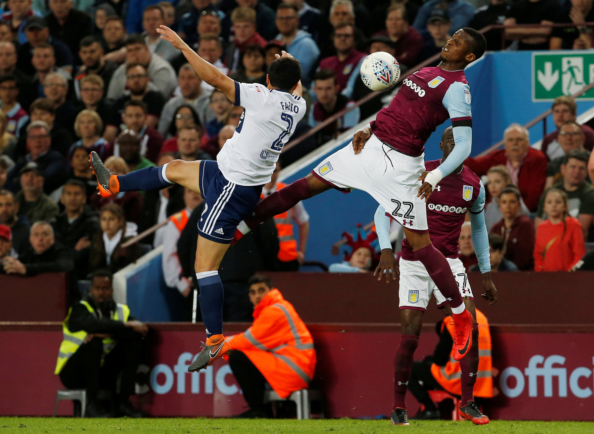 Soccer Football - Championship Play Off Semi Final Second Leg - Aston Villa v Middlesbrough - Villa Park, Birmingham, Britain - May 15, 2018 Aston Villa's Jonathan Kodjia in action with Middlesbrough's Fabio Action Images via Reuters/Craig Brough
