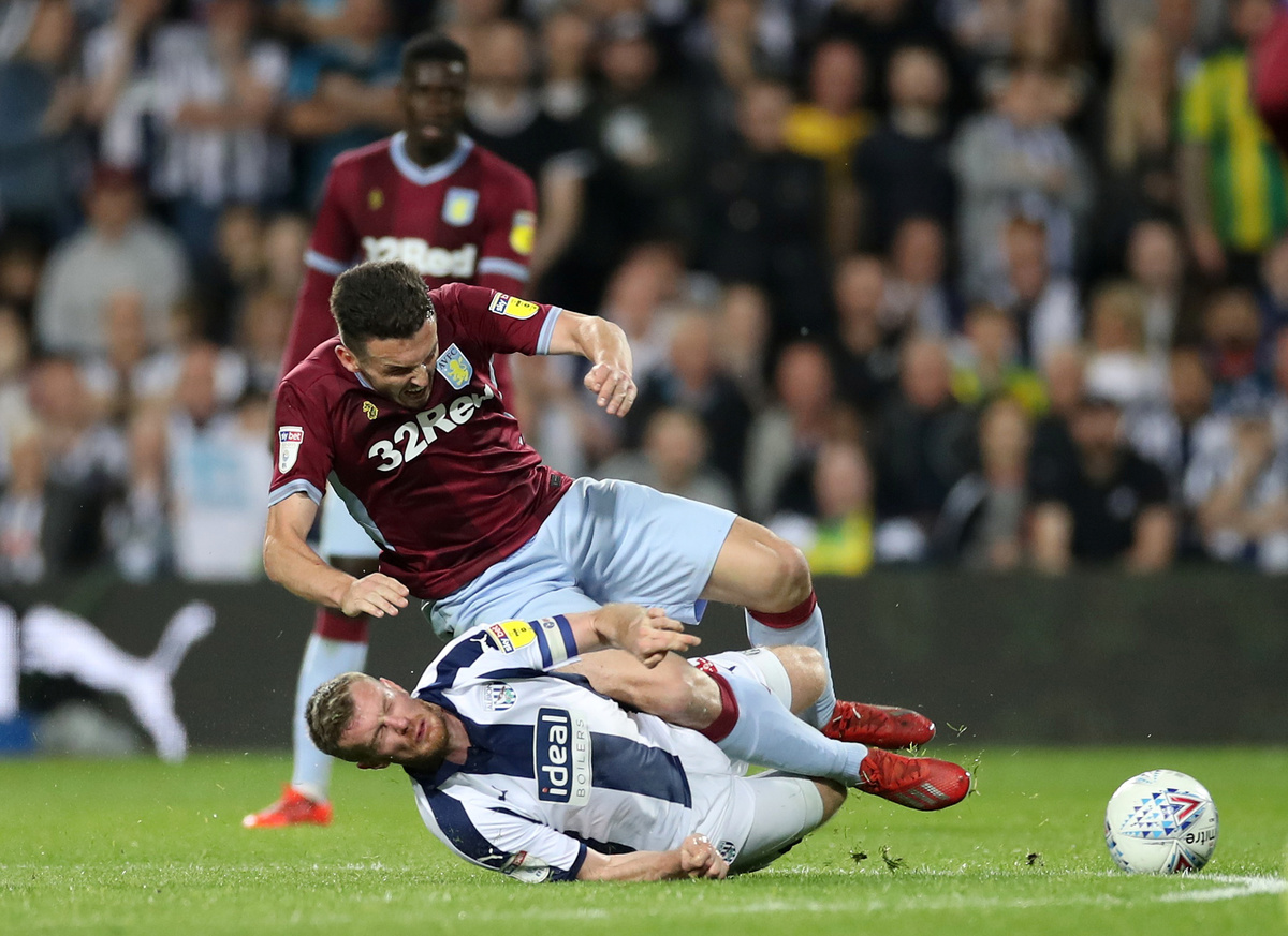 Soccer Football - Championship Play-Off Semi Final Second Leg - West Bromwich Albion v Aston Villa - The Hawthorns, West Bromwich, Britain - May 14, 2019 West Bromwich Albion's Chris Brunt is booked after this challenge on Aston Villa's John McGinn Action Images via Reuters/Carl Recine
