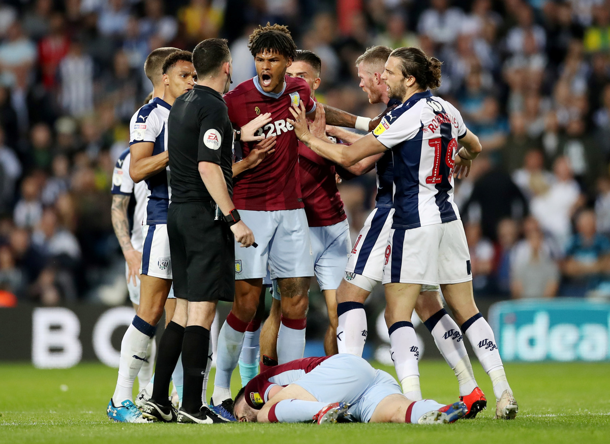 Soccer Football - Championship Play-Off Semi Final Second Leg - West Bromwich Albion v Aston Villa - The Hawthorns, West Bromwich, Britain - May 14, 2019 Aston Villa fans Action Images via Reuters/Carl RecineSoccer Football - Championship Play-Off Semi Final Second Leg - West Bromwich Albion v Aston Villa - The Hawthorns, West Bromwich, Britain - May 14, 2019 West Bromwich Albion's Jacob Murphy in action with Aston Villa's John McGinn Action Images via Reuters/Carl RecineSoccer Football - Championship Play-Off Semi Final Second Leg - West Bromwich Albion v Aston Villa - The Hawthorns, West Bromwich, Britain - May 14, 2019 West Bromwich Albion's Jacob Murphy in action with Aston Villa's John McGinn Action Images via Reuters/Carl RecineSoccer Football - Championship Play-Off Semi Final Second Leg - West Bromwich Albion v Aston Villa - The Hawthorns, West Bromwich, Britain - May 14, 2019 Aston Villa's Tyrone Mings remonstrates with referee Chris Kavanagh Action Images via Reuters/Carl RecineSoccer Football - Championship Play-Off Semi Final Second Leg - West Bromwich Albion v Aston Villa - The Hawthorns, West Bromwich, Britain - May 14, 2019 West Bromwich Albion fans celebrate Action Images via Reuters/Carl RecineSoccer Football - Championship Play-Off Semi Final Second Leg - West Bromwich Albion v Aston Villa - The Hawthorns, West Bromwich, Britain - May 14, 2019 West Bromwich Albion's Craig Dawson scores their first goal Action Images via Reuters/Carl Recine