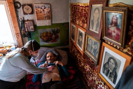 Riding a horse-drawn cart, Dr. Viktoria Mahnych trots along country roads to attend to her patients in several villages nestled in the Carpathian Mountains in western Ukraine.