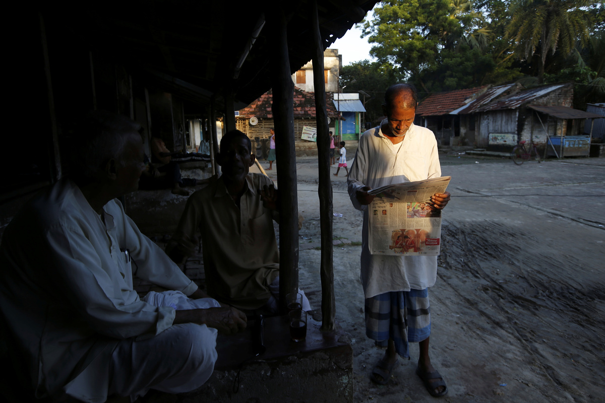 Sheikh Aftab Uddin, 66, and his wife Mamta Bibi, 50, pose for a picture outside their new mud house after their previous house was washed away due to high tides on Ghoramara Island, India, August 19, 2018. REUTERS/Rupak De Chowdhuri A ShiÕite Muslim man participates in a Muharram procession on Ghoramara Island, India, September 22, 2018. REUTERS/Rupak De Chowdhuri A man gets shaved by a barber at a market on Ghoramara Island, India, September 20, 2018. REUTERS/Rupak De Chowdhuri Hindu women dance in a procession during Laxmi Puja festival on Ghoramara Island, India, October 24, 2018. REUTERS/Rupak De Chowdhuri Students from a primary school read books inside a classroom on Ghoramara Island, India, November 16, 2018. REUTERS/Rupak De Chowdhuri ShiÕite Muslim men participate in a Muharram procession on Ghoramara Island, India, September 22, 2018. REUTERS/Rupak De Chowdhuri Purnima Shaw, 27, makes a ritual painting from rice paste on clay floor on the occasion of Laxmi Puja festival on Ghoramara Island, India, October 24, 2018. REUTERS/Rupak De Chowdhuri Mumtaz Bibi, 40, plays with her five-month-old granddaughter Nabina Khatun inside their house on Ghoramara Island, India, September 21, 2018. REUTERS/Rupak De Chowdhuri Eight-month-old Sheikh Rahaman receives treatment with a nebuliser on Ghoramara Island, India, August 19, 2018. REUTERS/Rupak De Chowdhuri Angur Bala Mondal, 83, sits inside her house in front of posters of Hindu deities, after she broke her hip joint, in Ghoramara Island, India, August 19, 2018. REUTERS/Rupak De Chowdhuri Women gesture after a phone call in front of their house on Ghoramara Island, India, November 16, 2018. REUTERS/Rupak De Chowdhuri A fisherman cooks as others rest on a boat after casting net in the water near Ghoramara Island, India, October 24, 2018. REUTERS/Rupak De Chowdhuri A man carries his son as he walks past a social welfare house on Ghoramara Island, India, October 25, 2018. REUTERS/Rupak De Chowdhuri A hilsa fish is seen as fishermen pull the net on a boat near Ghoramara Island, India, October 24, 2018. REUTERS/Rupak De Chowdhuri A fisherman speaks with others as they prepare to cast a net in the waters near Ghoramara Island, India, October 24, 2018. REUTERS/Rupak De Chowdhuri Children play on a broken embankment along with a salt water pond after high tide flooded Ghoramara Island, India, November 17, 2018. REUTERS/Rupak De Chowdhuri A man reads a newspaper in a market area in Ghoramara Island, India, September 22, 2018. REUTERS/Rupak De Chowdhuri A woman walks towards an embankment after tying her cow to higher ground during high tide on Ghoramara Island, India, September 8, 2018. REUTERS/Rupak De Chowdhuri Mahabuba Khatun, 15, cleans a fishing net in front of her house on Ghoramara Island, India, September 7, 2018. REUTERS/Rupak De Chowdhuri A girl plays on the coastline on Ghoramara Island, India, October 23, 2018. REUTERS/Rupak De Chowdhuri A man walks past a house which was damaged by a high tide on Ghoramara Island, India, September 22, 2018. REUTERS/Rupak De Chowdhuri Workers repair a boat along the coastline on Ghoramara Island, India, October 24, 2018. REUTERS/Rupak De Chowdhuri Utensils belonging to a tea shop lie in a pond before getting washed on Ghoramara Island, India, September 22, 2018. REUTERS/Rupak De Chowdhuri A fisherman and his family ride past Ghoramara Island on their boat on Muri Ganga River, India, August 18, 2018. REUTERS/Rupak De Chowdhuri Villagers work in a paddy field on Ghoramara Island, India, August 19, 2018. REUTERS/Rupak De Chowdhuri