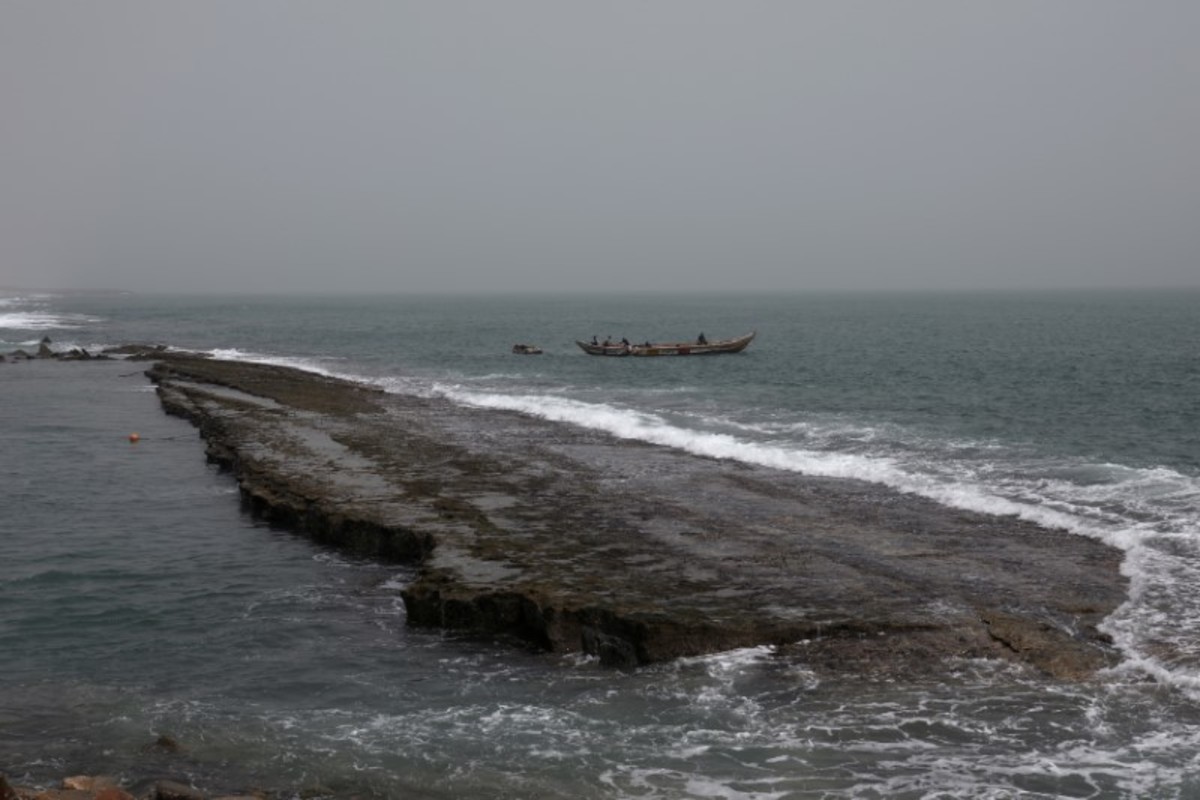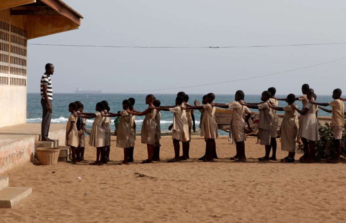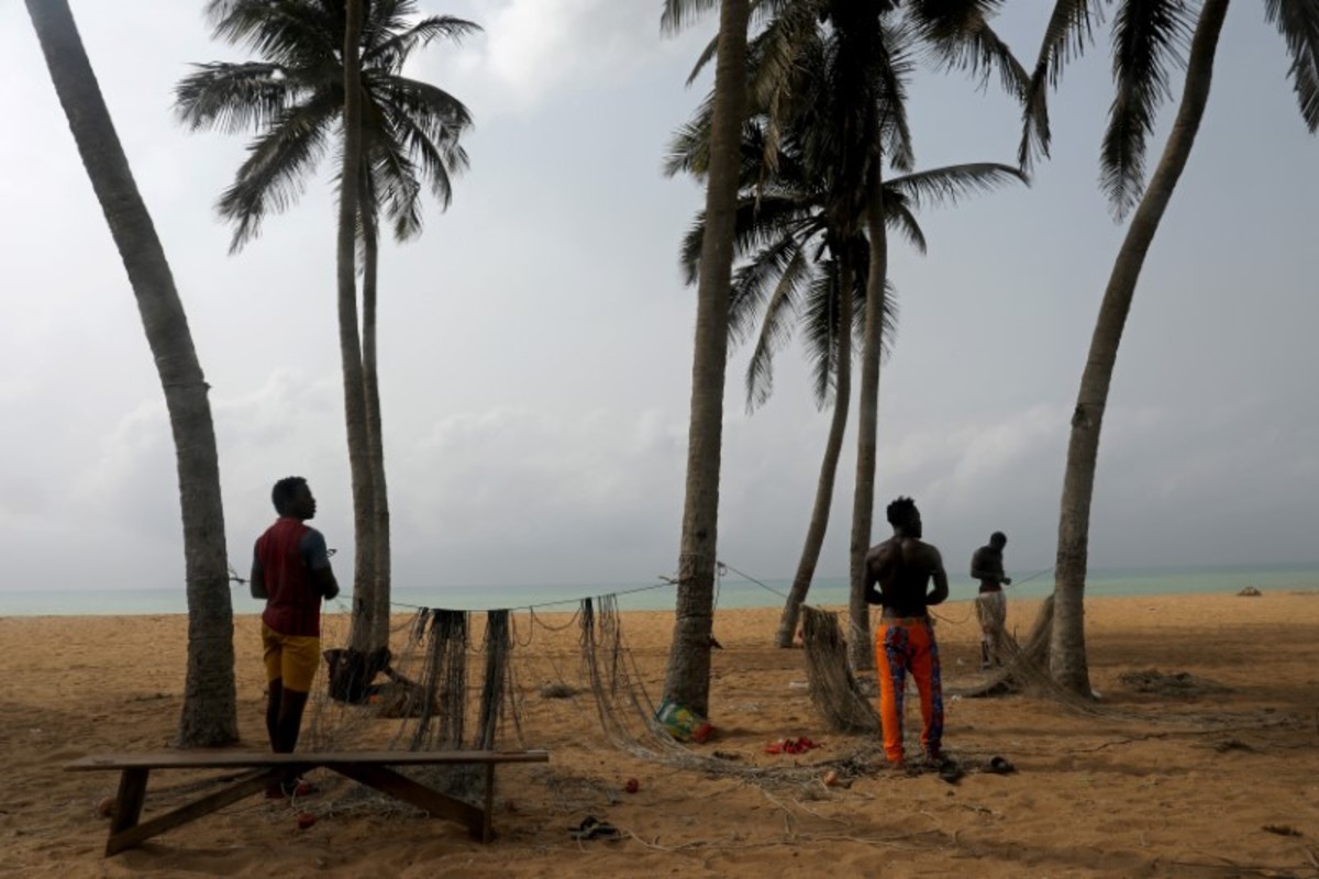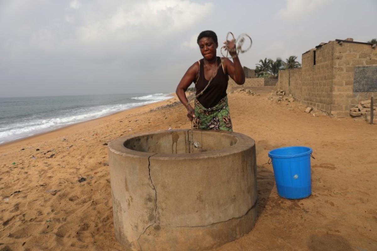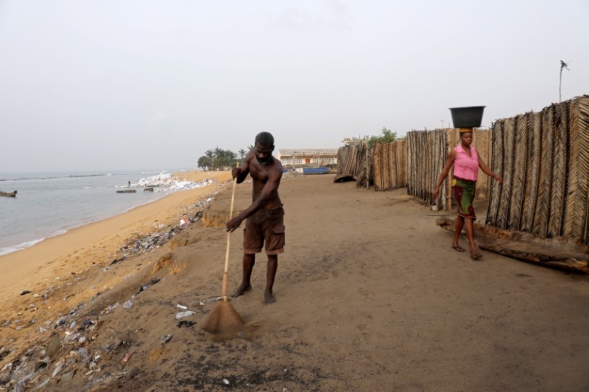 FILE PHOTO: Massi Natou, 46, collects water from a well on a coastline that is threatened by sea storms and coastal erosion in Afidegnigban, a suburb of Lome, Togo, February 28, 2020. REUTERS/Luc GnagoA boat passes by the remains of a costal road that has fallen into the sea due to coastal erosion in Lome, Togo, February 16, 2020. REUTERS/Luc GnagoAfenou Agnes, 58, a resident of Baguida, who was given money in 2014 by the government to be rehoused in Tropicana, sits in her home in Baguida, a suburb of Lome, Togo, February 28, 2020 after returning to Baguida after the funds ran out. REUTERS/Luc GnagoWoollams Ablavi, 61, who was given money in 2014 by the government to be rehoused when she said her property was destroyed by coastal erosion but returned to Baguida when the money ran out, hangs clothes up to dry at her home in Baguida, a suburb of Lome, Togo, February 28, 2020. In 2014. REUTERS/Luc GnagoAfanubo Hollalie Olivia, 27, her husband Agbe Sanvi, 32, and their three children, all of whom are residents of Baguida, stand by their home that was damaged by storms and they say is threatened with destruction by coastal erosion in Baguida, a suburb of Lome, Togo, February 29, 2020. REUTERS/Luc GnagoTogbui Doevi Jean Dorllayi II, 63, the chief of Doevikope in Baguida, demonstrates where the sea line used to be, while walking along the beach that he says has been damaged by coastal erosion, in Baguida, a suburb of Lome, Togo, February 28, 2020. REUTERS/Luc GnagoThe sea is seen from part of the ruined house of former Chief of Afidegnigban, Kokou Denis Apedo, on the sandy beaches of Afidegnigban, a suburb of Lome, that are being lost through coastal erosion and sea storms in Togo, February 16, 2020. REUTERS/Luc GnagoJacob Amedrana, 47, who said he had to leave his home as it was destroyed by coastal erosion, sweeps the floor in front of his temporary home which is now also under threat of coastal erosion, in Baguida, Togo, February 25, 2020. REUTERS/Luc GnagoRocks and stones that are intended to protect the beach from coastal erosion are seen on the beach front in Aneho, Togo, February 26, 2020. REUTERS/Luc GnagoMarie Ma Joie Gami, 26, sits with her daughter Sarah Tamakloe, 1, by the front door to their home, which they say is under threat from coastal erosion as they talk with a friend in Baguida, a suburb of Lome, Togo, February 25, 2020. REUTERS/Luc GnagoThe window of an abandoned bar is seen on the coast where many of the population have moved away from the sandy beaches that are being lost through coastal erosion and sea storms in Afidegnigban, a suburb of Lome, Togo February 25, 2020. REUTERS/Luc GnagoPeople walk past boats abandoned on the beach where the port of Lome can be seen in the distance in Lome, Togo, February 29, 2020. REUTERS/Luc GnagoTogbui Doevi Jean Dorllayi II, Chief of Doevikope, 63, sits in his temporary home, a makeshift shelter made of straw and planks in Baguida a suburb of Lome, Togo, while he is building a new home 100 yards inshore from his former property that he says has been destroyed by coastal erosion and sea storms, February 26, 2020. REUTERS/Luc GnagoThe remains of an abandoned house are seen on the coast of Afidegnigban a suburb of Lome, Togo where many of population have moved away from the sandy beaches as they are being lost through coastal erosion and sea storms, February 16, 2020. REUTERS/Luc GnagoAssah Kokou Akpebiotor 70, smokes as he looks out to sea from the coastal village of Baguida, a suburb of Lome from where many of population have moved away from their homes on the sandy beaches which he says are being lost through coastal erosion and sea storms in Togo, February 27, 2020. REUTERS/Luc GnagoThe remains of an abandoned bar are seen on the coast of Afidegnigban, a suburb of Lome, Togo, where many of the population have moved away from their homes on the sandy beaches that are being lost through coastal erosion February 16, 2020. REUTERS/Luc GnagoThe sea is seen through a window of an abandoned house on the sandy beach of Afidegnigban, a suburb of Lome, which are being lost through coastal erosion and sea storms in Togo, February 16, 2020. REUTERS/Luc GnagoTogbui Doevi Jean Dorllayi II, 63, the chief of Doevikope in Baguida, talks on his mobile during a private business meeting in Baguida, a suburb of Lome, Togo, February 27, 2020. REUTERS/Luc GnagoPeople walk past the remains of a house that was destroyed by coastal erosion and sea storms in Afidegnigban, Lome, Togo, February 16, 2020. REUTERS/Luc GnagoLucien Kpondji, 54, a resident of Afidegnigban, holds an old black and white photograph of his father Azonsou Kpondji, his grandfathers, relatives and friends, in Afidegnigban, a suburb of Lome, Togo, February 28, 2020. REUTERS/Luc GnagoWaves crash against former stairs of a building swept away by the sea on the sandy beaches that are being lost through coastal erosion and sea storms in Baguida, a suburb of Lome, Togo February 17, 2020. REUTERS/Luc GnagoTogbui Doevi Jean Dorllayi II, Chief of Doevikope, 63, works on his kitchen garden next to his temporary home in Baguida a suburb of Lome, Togo, while he is building a new home 100 yards inshore from his former property that he says has been destroyed by coastal erosion February 26, 2020. REUTERS/Luc GnagoFishermen repair their nets on the sandy beach of Aneho, Togo, which is under threat from coastal erosion February 26, 2020. REUTERS/Luc GnagoThe sea is seen from the windows of the ruined house of former Chief of Afidegnigban, Kokou Denis Apedo, on the sandy beaches of Afidegnigban, a suburb of Lome, that are being lost through coastal erosion and sea storms in Togo, February 16, 2020. REUTERS/Luc GnagoAdjahi Komlan, a grandson of former Chief of Afidegnigban Mr Koukou Denis Apedo, looks out to sea from the ruins of his grandfather's house which was built on sandy beaches that are being lost through coastal erosion and sea storms in Afidegnigban a suburb of Lome, Togo February 25, 2020. REUTERS/