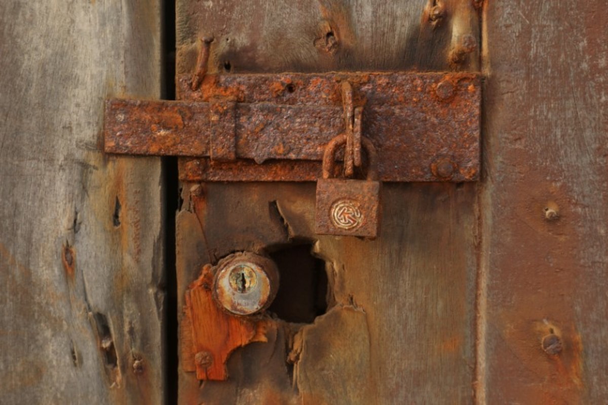 FILE PHOTO: A lock corroded by sea water secures a storm damaged door on a property that is under threat of destruction from sea storms and coastal erosion in Afidegnigban, a suburb of Lome, Togo, February 26, 2020. REUTERS/Luc Gnago