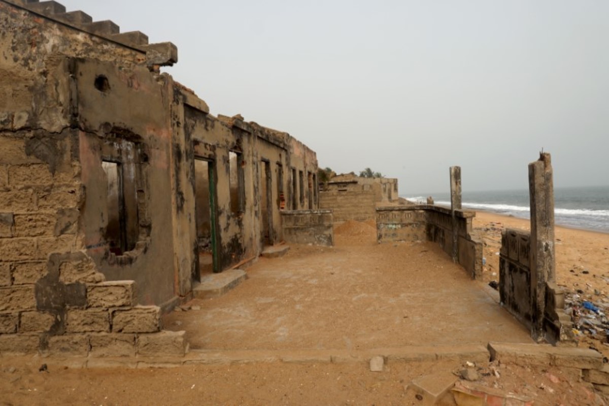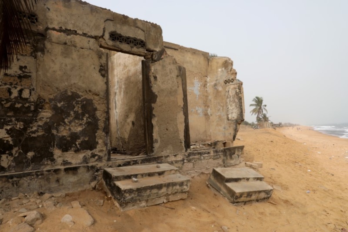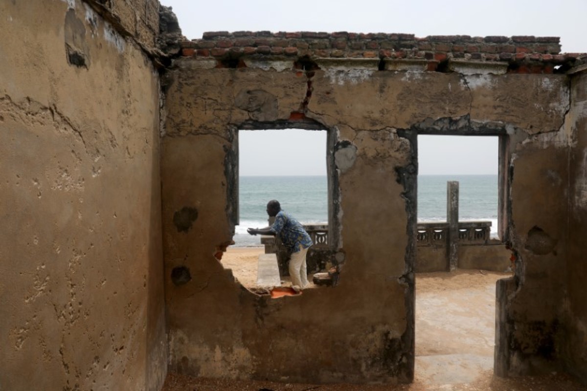 On the outskirts of the capital Lome, crumbling abandoned buildings dot the shoreline, their empty windows staring out at the advancing water. Remaining residents are fearful.