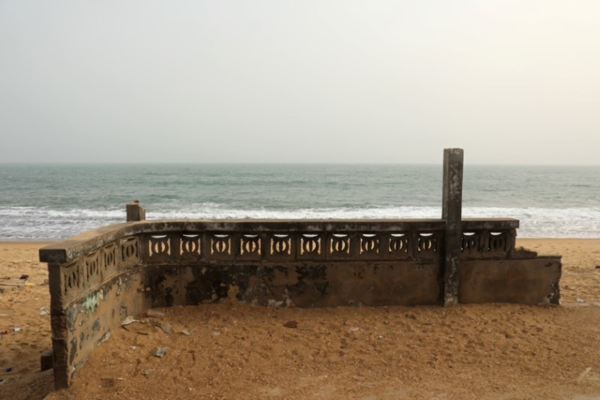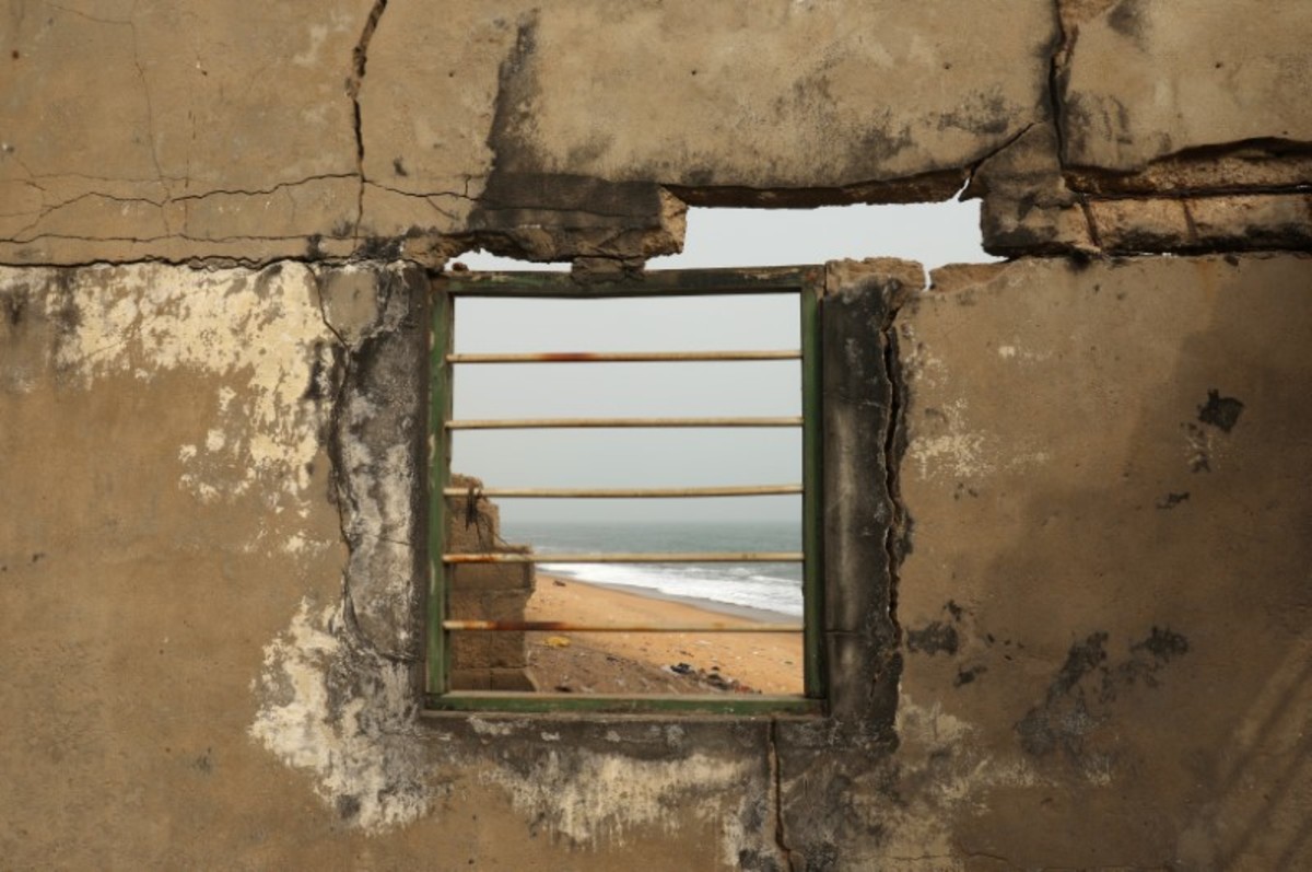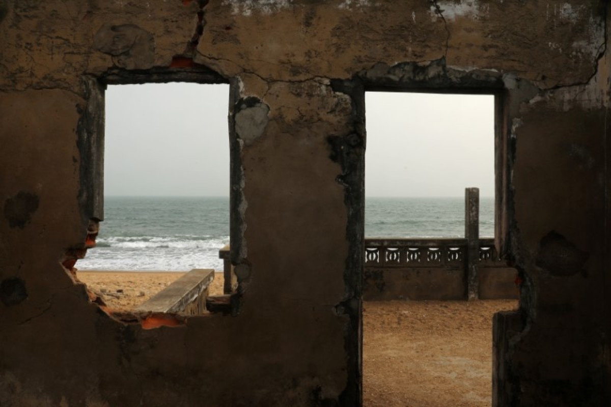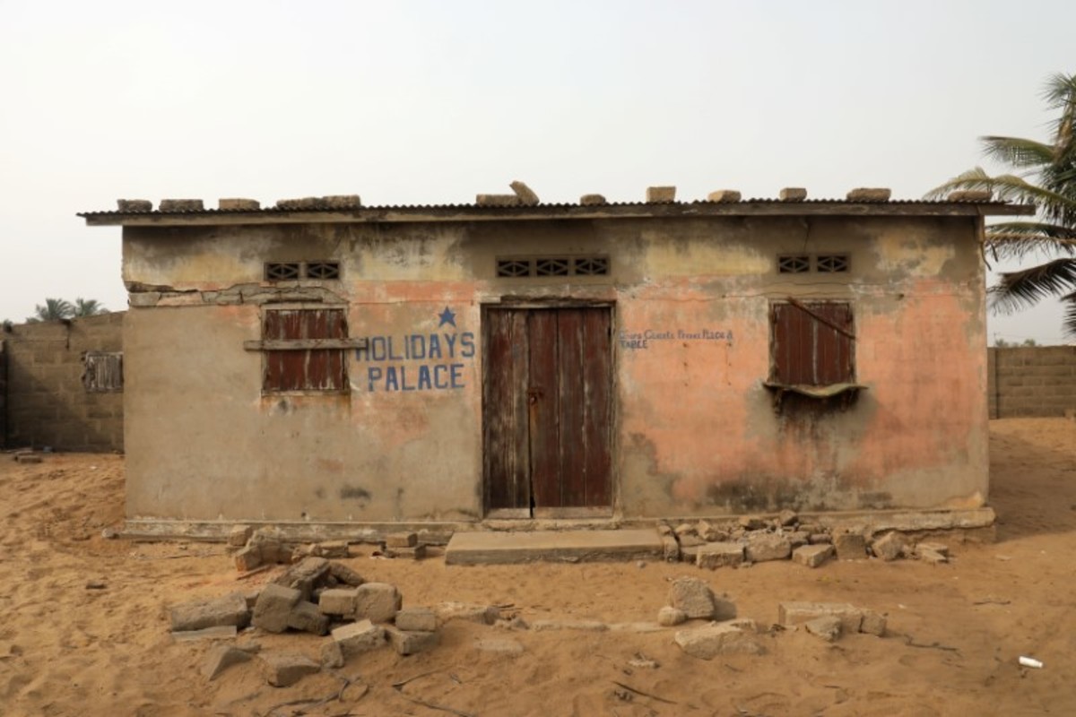 On the outskirts of the capital Lome, crumbling abandoned buildings dot the shoreline, their empty windows staring out at the advancing water. Remaining residents are fearful.
