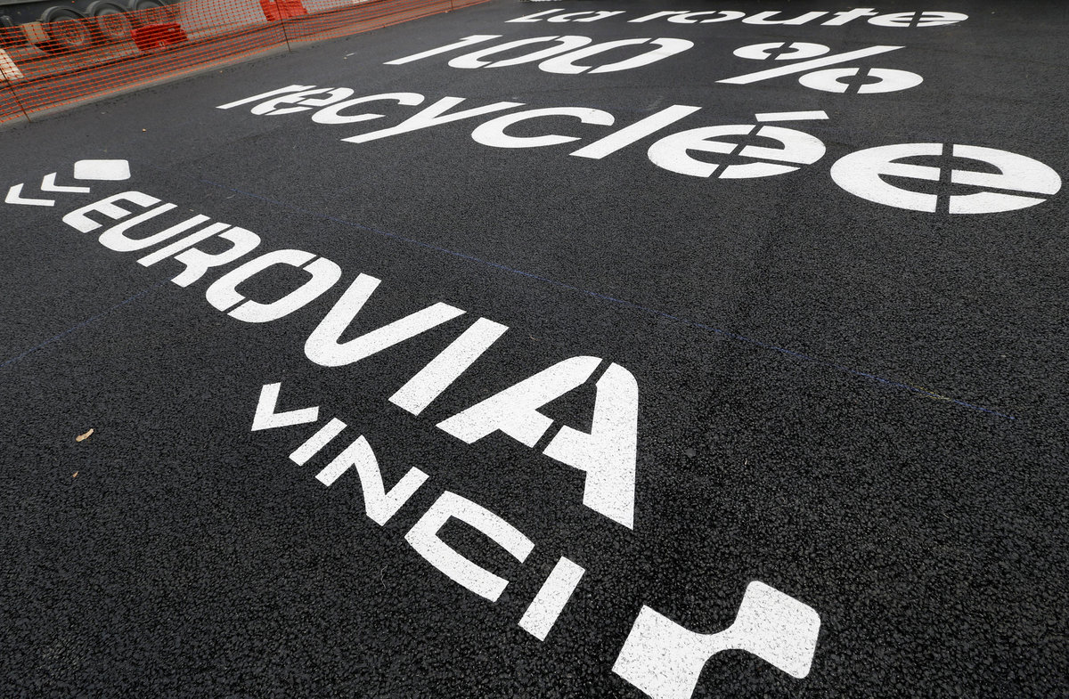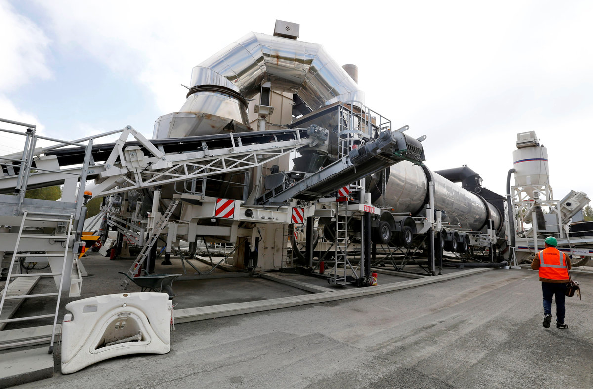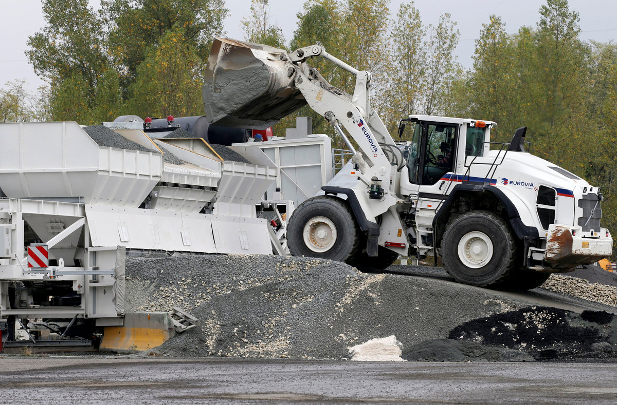 A view shows a mobile factory installed to produce tons of recycled asphalt near the A10 motorway in Gironde for a test for the first "100% recycled" road by Eurovia, in collaboration with Vinci Autoroute, as part of a 1 km section renovation project, in Saint-Christoly-de-Blaye, France, October 9, 2018. Eurovia inaugurated its "ecological" route, a world first, containing 100% recycled materials. REUTERS/Regis DuvignauA view shows a mobile factory installed to produce tons of recycled asphalt near the A10 motorway in Gironde for a test for the first "100% recycled" road by Eurovia, in collaboration with Vinci Autoroute, as part of a 1 km section renovation project, in Saint-Christoly-de-Blaye, France, October 9, 2018. Eurovia inaugurated its "ecological" route, a world first, containing 100% recycled materials. REUTERS/Regis DuvignauThe Vinci logo is seen on jackets during a visit a a mobile factory installed to produce tons of recycled asphalt near the A10 motorway in Gironde for a test for the first "100% recycled" road by Eurovia, in collaboration with Vinci Autoroutes, as part of a 1 km section renovation project, in Saint-Christoly-de-Blaye, France, October 9, 2018. Eurovia inaugurated its "ecological" route, a world first, containing 100% recycled materials. REUTERS/Regis DuvignauView of a recycled asphalt at a test aera for the first "100% recycled" road by Eurovia, in collaboration with Vinci Autoroutes, near the A10 motorway in Gironde, as part of a 1 km section renovation project, in Saint-Christoly-de-Blaye, France, October 9, 2018. Eurovia inaugurated its "ecological" route, a world first, containing 100% recycled materials. REUTERS/Regis Duvignau