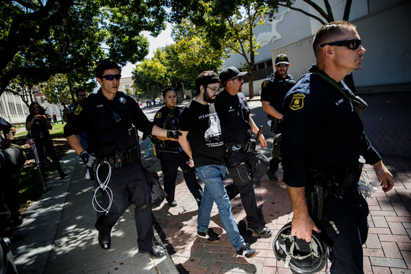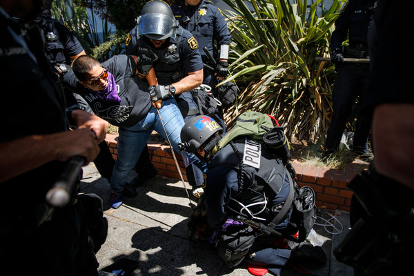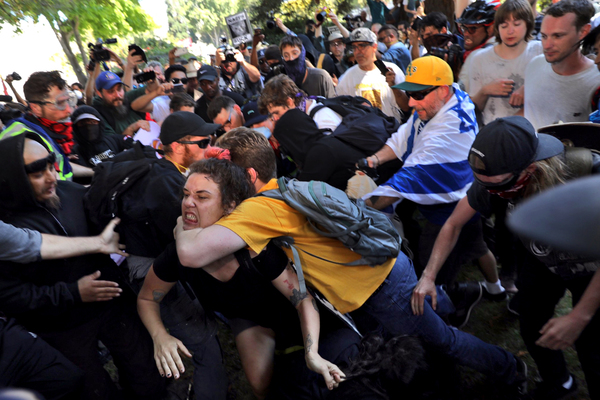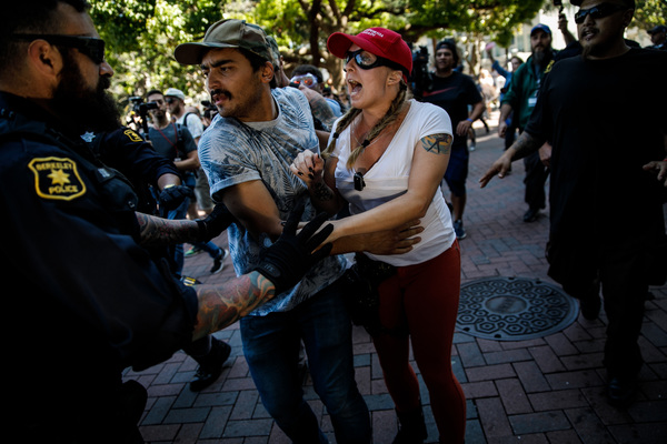 BERKELEY, Calif. _ Thousands of counterprotesters took to the streets of Berkeley on Sunday where they clashed with a handful of President Donald Trump supporters, leading to several violent clashes and at least 10 arrests.