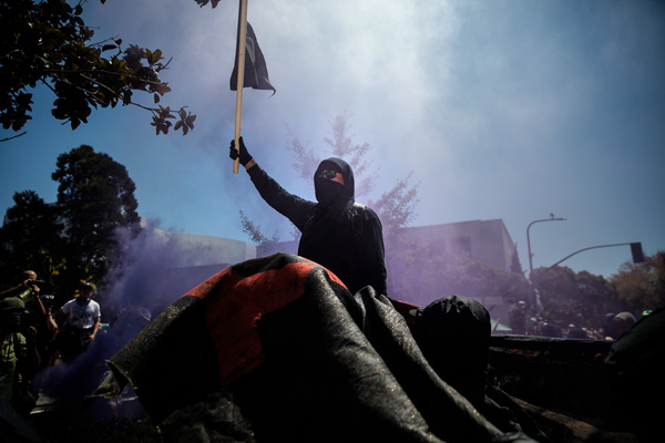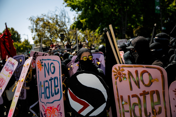 Some of the antifa protesters threatened to break the cameras of anyone who filmed them, including journalists. One reporter tweeted that he had been pepper sprayed in one scuffle.